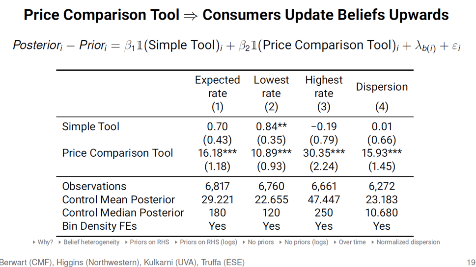 研究揭示,消费者倾向于低估了自己可获得的利率均值,但同时也低估了利率的方差。使用价格比较工具后,消费者的信念得到显著纠正,低估程度减少。