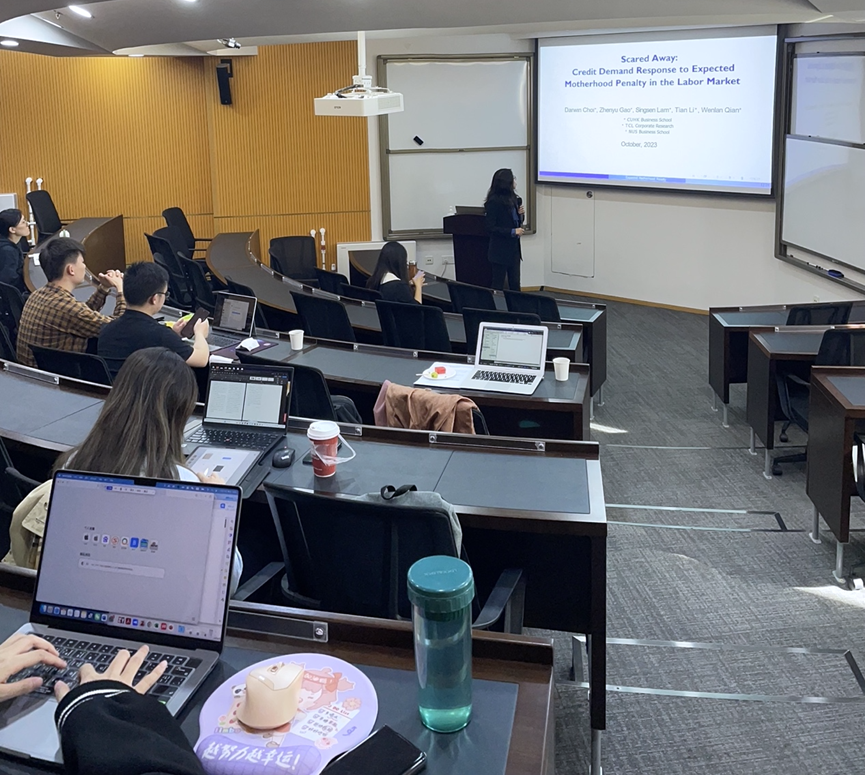 2023年10月13日,北京大学国家发展研究院、北京大学数字金融研究中心举办了2023年秋季学期的第四场数字金融workshop。本期workshop由国发院助理教授、中心研究员胡佳胤主持,邀请到新加坡国立大学的钱文澜教授分享其与合作者的最新研究《Scared Away: Credit Demand Response to Expected Motherhood Penalty in the Labor Market(被吓跑:信贷需求对劳动力市场预期生育惩罚的反应)》。四十余位老师和同学以线下或线上的方式参与了本次workshop,并与主讲嘉宾进行了深入的交流和讨论。