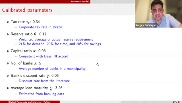此外,Sarkisyan教授还介绍了一个动态银行模型,用以估计数字支付系统对货币政策传导机制的影响。模型的核心在于分析数字支付如何通过降低银行的市场力量,增强货币政策的传导效率。