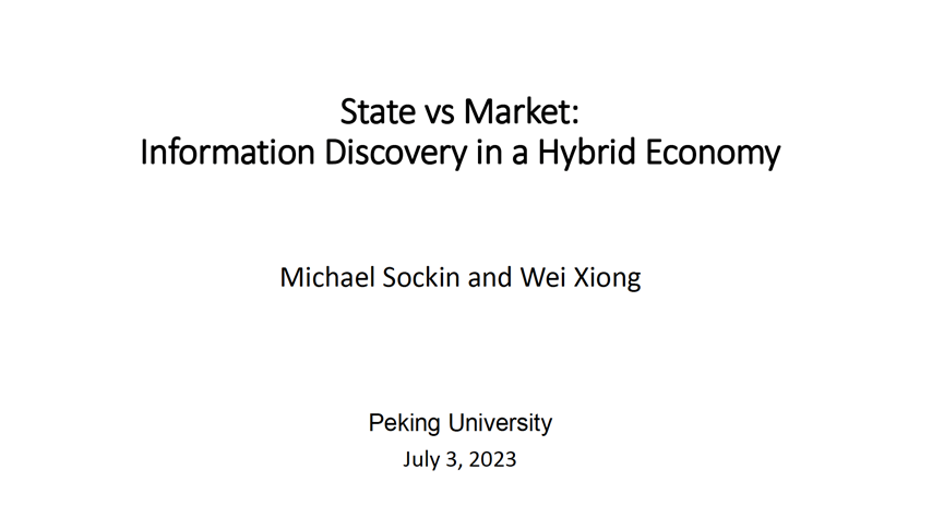 2023年7月3日,北京大学国家发展研究院、北京大学数字金融研究中心举办了2023年春季的第十五场数字金融workshop。本期workshop由北大国发院助理教授、中心研究员胡佳胤主持,邀请到普林斯顿大学和香港中文大学(深圳)的熊伟教授分享其与合作者的最新研究《State versus Market: Information Discovery in a Hybrid Economy(政府和市场之争:混合经济中的信息发现)》。近六十位老师和同学线下参与了本次workshop,并与主讲嘉宾进行了深入的交流和讨论。