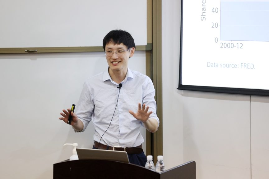 在一个半小时的讲座中,在座师生纷纷提问、发言。北京大学国家发展研究院副教授邢亦青,助理教授胡佳胤、李明浩、刘诗尧,博士研究生王心怡,清华大学社会科学学院助理教授徐志浩,北京大学数学科学学院本科生杨宇铭等师生先后就研究背景、变量定义、实证设定等问题与曾垚教授进行了深入的交流。
