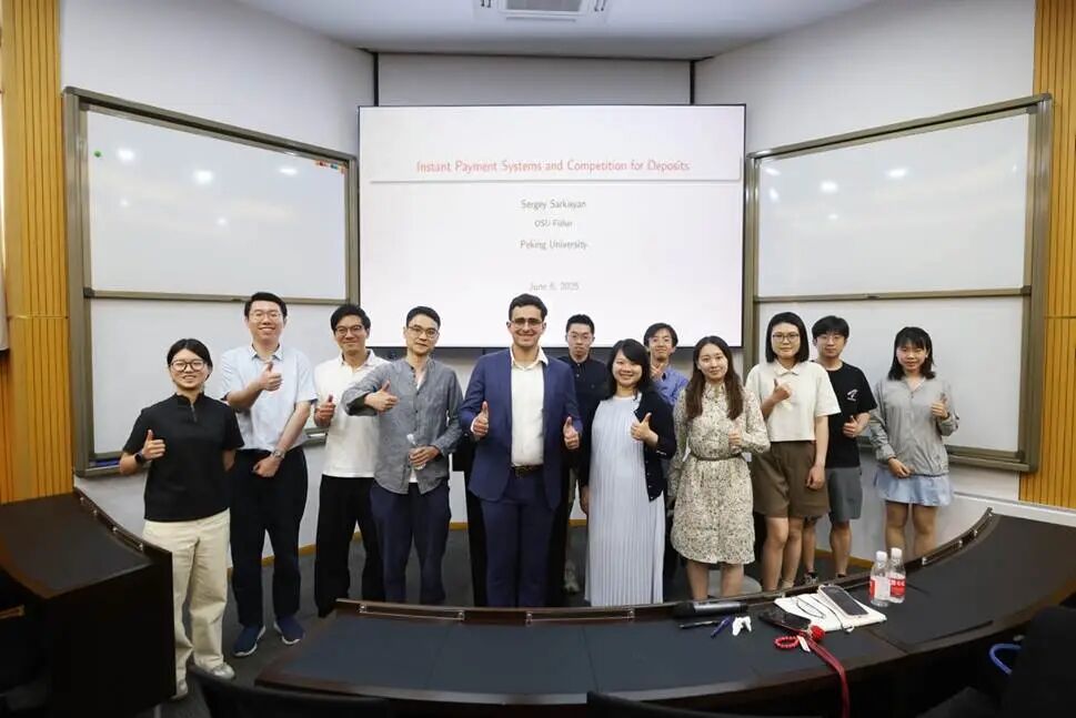 2025年6月6日上午,北京大学国家发展研究院、北京大学数字金融研究中心举办了2025年春季学期的第十一场数字金融workshop。本期workshop由北京大学国家发展研究院助理教授、北大数字金融中心研究员胡佳胤主持,美国俄亥俄州立大学Fisher商学院金融学助理教授Sergey Sarkisyan担任主讲嘉宾,分享了题为“Instant Payments Systems and Competition for Deposits(即时支付系统和银行存款竞争)”的研究成果。该论文使用COVID-19防控政策放松作为工具变量,分析了即时支付系统对不同规模银行的存款和利率等方面的影响。四十余位老师和同学参与了本次workshop,并与主讲嘉宾进行了深入的交流和讨论。