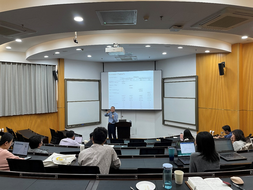 北京大学国家发展研究院汪浩教授,李力行教授,对外经济贸易大学金融学院副院长、北大数字金融研究中心特约高级研究员张海洋教授,中国人民大学财政金融学院高昊宇副教授,清华大学经济管理学院祝武助理教授,北京大学中国社会科学调查中心副研究员、北大数字金融研究中心高级研究员孔涛,北大国发院副研究员、北大数字金融研究中心高级研究员王勋,北大国发院助理教授、中心研究员胡佳胤,博士生李星宇、董燕飞等听众在报告过程中提问并与张博辉教授进行了深入讨论。