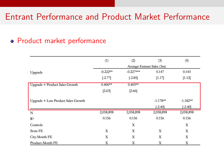 黄毅老师和其合作者进一步讨论了可能的机制。上文中提及的新进入的商铺有更低的销售额和更高的后续退出率。这种低于平均水平的表现说明了进入决策并不是最优的,和“凸显理论”的推论一致,而与“理性学习理论”(rational learning)的推论并不一致。进一步的研究表明这种销售额的下降更多来自于市场表现较为低迷的时候,进一步验证了“凸显理论”的推论。