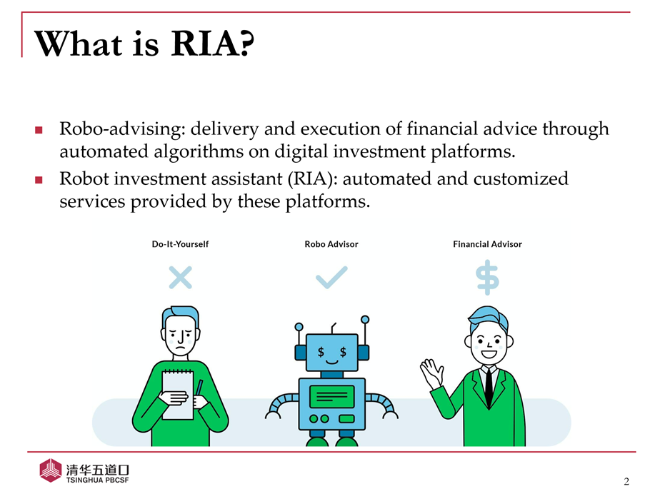 智能投顾是指在数字投资平台上通过自动算法提供和执行金融建议,是解决个人投资决策问题的一种有效且颇具前景的方法。智能理财助理(Robot Investment Assistant,RIA)提供自动定制化服务,是这一行业的重要组成部分。凭借低成本、大客户群等优势,RIA可以帮助低收入、金融知识欠缺的群体获取金融服务、分散投资风险,对人口众多、个人投资者占主导的中国市场尤为重要。