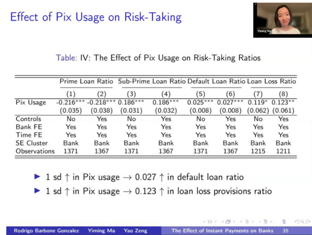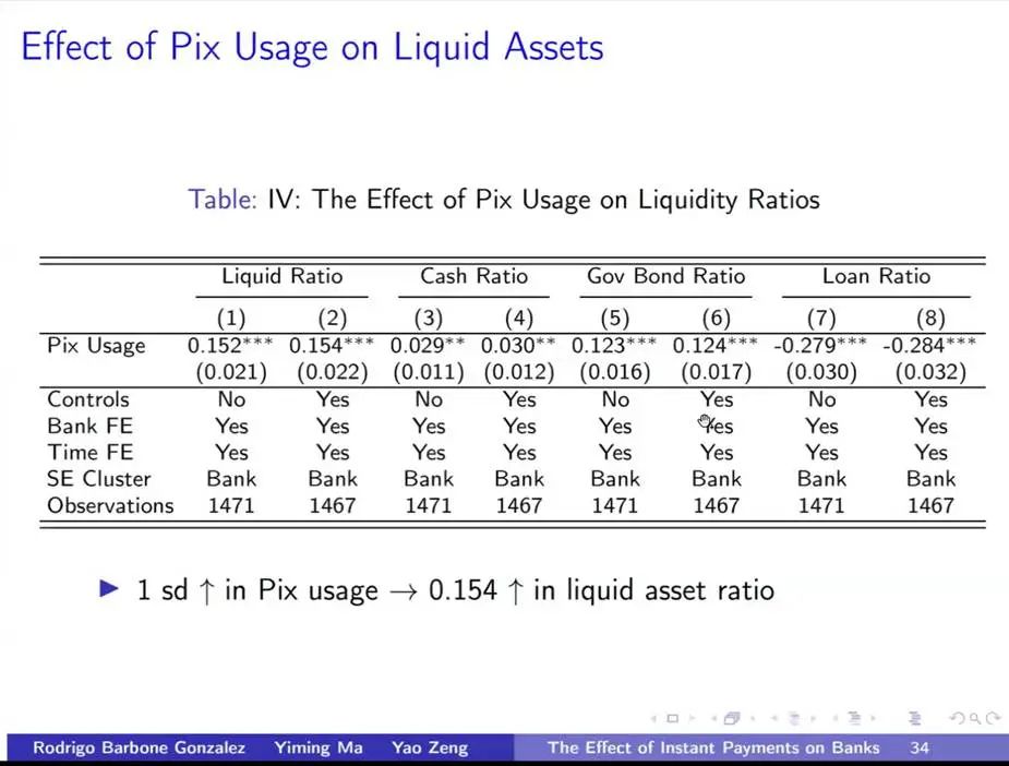 (2)其次,未预期到Pix的支付使用占比越高,该银行对于各类流动性资产的需求也会提高,例如政府债券、现金等流动性较高的资产占比都会显著上升。而贷款的占比则会显著下降。