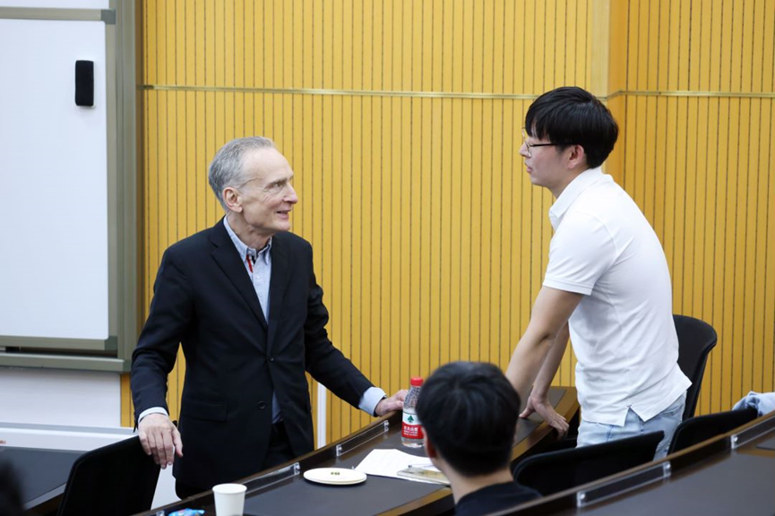在讲座过程中,北大博雅特聘教授、北大环境与能源经济研究中心主任徐晋涛,北大新结构经济学研究院学术副院长、副教授王勇,北大光华金融学助理教授韩鹏飞,清华大学经济管理学院助理教授吴星晔,北大国发院助理教授胡佳胤、李明浩,北大全球健康发展研究院助理教授潘聿航,韩国成均馆大学金融学副教授、北大国发院访问助理教授边文龙等发言提问,与Scheinkman教授就研究对象、研究设计与结果解读等话题展开了深入的讨论。最后,徐晋涛教授为Scheinkman教授颁发纪念牌并合影留念,会议在一片掌声中结束。