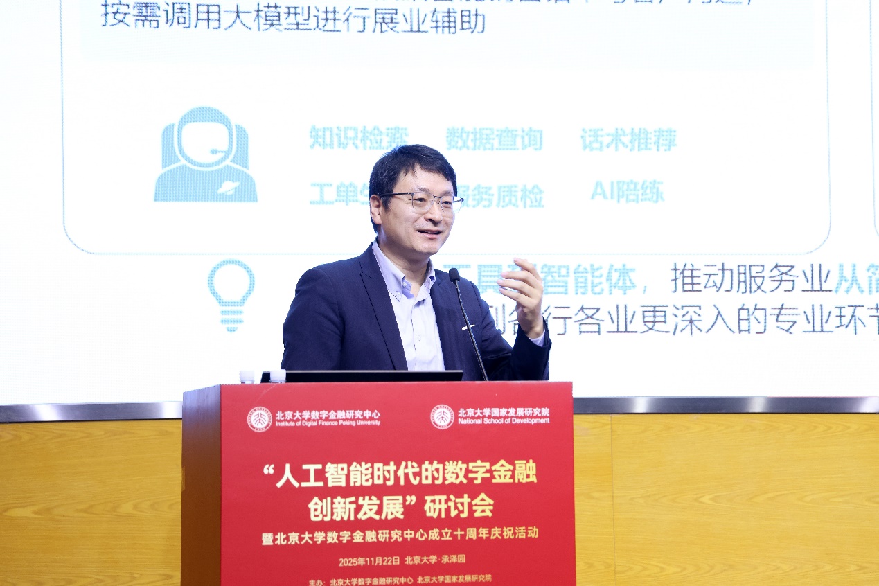 2025年11月22日,“人工智能时代的数字金融创新发展”研讨会暨北京大学数字金融研究中心成立十周年庆祝活动在北京大学承泽园成功举行。当天下午就“AI在金融中的应用”进行研讨,由北京大学数字金融研究中心副主任沈艳教授主持,蚂蚁集团研究院院长李振华、上海新金融研究院副院长刘晓春、腾讯研究院副院长杜晓宇围绕主题展开分享。