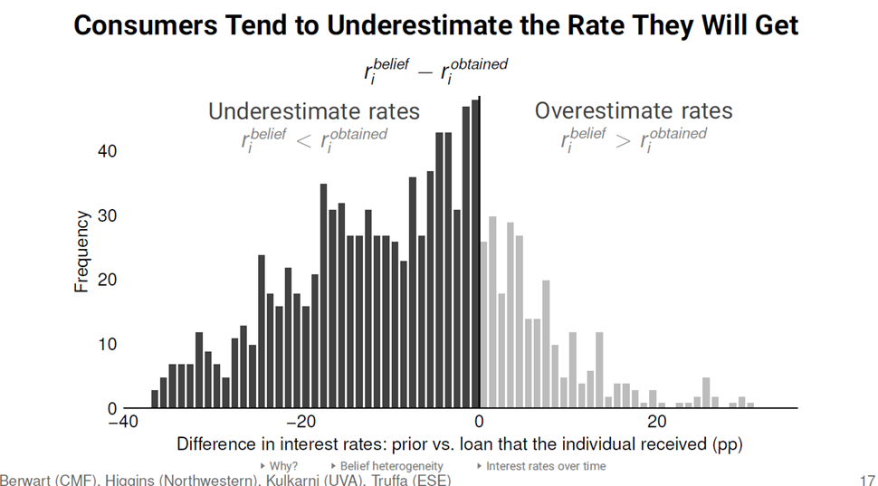 研究揭示,消费者倾向于低估了自己可获得的利率均值,但同时也低估了利率的方差。使用价格比较工具后,消费者的信念得到显著纠正,低估程度减少。
