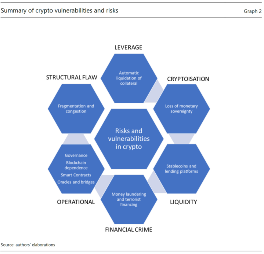 这种发展模式之下的加密货币和传统金融一样,甚至更有可能面临信息或者是外部性等“市场失灵”问题。“市场失灵”问题以外,加密货币市场的脆弱性问题包括同样值得注意。尽管脆弱性问题目前还未威胁到金融稳定性,但在未来可能会和传统金融以及实体经济产生联系。总而言之,“市场失灵”问题和潜在的脆弱性问题都导致加密货币市场无效,进而影响投资者保护(investor protection)和市场完整(market integrity)。因此采用恰当的措施以解决加密货币的风险就尤为重要。